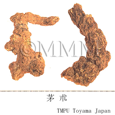 RemarksMaozhu (Hancangzhu) is A. lancea (Jap. name: Hosobaokera), produced in Hubei, Jiangxi, Jiangsu Prov. and others. Jincangzhu (Shancangzhu) is A. chinensis (Jap. name: Shinaokera), produced in Hebei, Henan and Jiangxi. North Korean Cangzhu is A. koreana Kitam. (= A. lancea DC.var. simplicifolia Kitam.), Jap. name: Nanman'okera, produced in Jilin, Liaoning, north part of Korean peninsula and Japan. Cangzhu produced in Maoshan of Jiangsu Prov. is very famous for its high quality. Though the cotton-like white separation of the essential oil on the surface is often misjudged as fungus, it is the mixed crystal of beta-Eudesmol and Hinesol, which is a proof of the high quality.