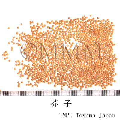 | Original plant name | 白芥子<White Mustard Seed>: Brassica alba (L.) Boiss. (= Brassica hirta Moench)1;黄芥子<Yellow Mustard Seed>: Brassica juncea Coss. (= B. juncea Czern.)2, (Shirogarashi1, Karashi2) | |||||