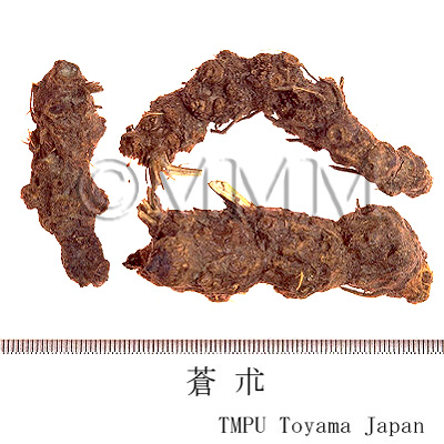 | Remarks | Maozhu (Hancangzhu) is A. lancea (Jap. name: Hosobaokera), produced in Hubei, Jiangxi, Jiangsu Prov. and others. Jincangzhu (Shancangzhu) is A. chinensis (Jap. name: Shinaokera), produced in Hebei, Henan and Jiangxi. North Korean Cangzhu is A. koreana Kitam. (= A. lancea DC.var. simplicifolia Kitam.), Jap. name: Nanman'okera, produced in Jilin, Liaoning, north part of Korean peninsula and Japan. Cangzhu produced in Maoshan of Jiangsu Prov. is very famous for its high quality. Though the cotton-like white separation of the essential oil on the surface is often misjudged as fungus, it is the mixed crystal of beta-Eudesmol and Hinesol, which is a proof of the high quality. Recent report says that A. lancea has three types (Maoshan, Hubei-anhui and Dabeishan) depending on the characteristics of essential oils. A. chinensis also has two types (North and South). Cangzhu originated from A. lancea, A. chinensis and A. koreana contains Atractylodin. They are clearly distinguished from the one originated from A. japonica or A. ovata, which doesn't contain Atractylodin. | |||||