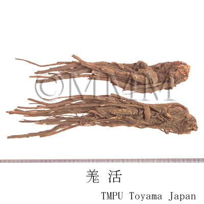 | Remarks | Kenkyōkatsu, produced in Korea, is the root or rhizome of Ostericum koreanum Kitagawa (= Angelica koreana Maxim.) of family Umbelliferae (Jap. name: Chosen'oniudo) or Ostericum grosseserratum Kitagawa (= Angelica uchiyamana Yabe) (Jap. name: Nioiudo). Both Kenkyōkatsu and Chōkyōkatsu, produced in Japan, are the roots or rhizomes of Angelica pubescens Maxim. (Jap. name: Shishiudo). Recently however, Japanese Qianghuo (Jap. name: Wakyōkatsu) is the slender roots of Aralia cordata Thunb. of family Araliaceae. Chinese Qianghuo is the root of genus Angelica of family Umbelliferae. Both Qianghuo and Duhuo (Araliae Cordatae Rhizoma) have benefits of expelling wind and removing dampness. They relieves pain and removes palsy as well. Qianghuo is a medicine of Taiyang meridians. It has the advantage of expelling dryness and diaphoresis, and should be used for exterior syndrome due to wind cold, while Duhuo has no effect of diaphoresis. Duhuo is a drug of Yin Minimum Kidney Meridian, and used with Xixin (Asiasari Radix), which has a beneficial effects on headache resulting from Yin Minor Channel. In ancient times, it was said "Qianghuo cures hives and Duhuo cures latent wind. Qianghuo tends to specialize in the exterior and Duhuo tends to specialize in the interior." | |||||