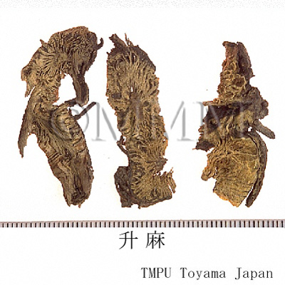 | Clinical application | As an antifebrile, antidote, and anti inflammatory drug, Shengma is applied for fever, headache, pharyngitis, cold, measles, and anal prolapse. | ||||||
