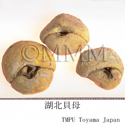| Remarks | There are many kinds of Beimu. The major kinds are as follows: - Zhebeimu (浙貝母) or Zhebei (浙貝): Fritillaria thunbergii Miq. - Hubeibeimu (湖北貝母): F. hupehensis Hsiao et K.C. Hsia - Chuanbeimu (川貝母) or Chuanbei (川貝): F. cirrhosa D. Don, F. unibracteata Hsiao et K.C.Hsia, F. przewalskii Maxim. - Lubeimu (炉貝): F. delavayi Franch. - Yibeimu (伊貝母) or Yibei (伊貝): F. pallidiflora Schrenk, F. walujewii Regel - Pingbeimu (平貝母) or Pingbei (平貝): F. ussuriensis Maxim. Each of them is listed in the Pharmacopoeia of the People's Republic of China under the different articles [Lubeimu (炉貝) is included in Chuanbeimu (川貝母)]. Beimu is an expectorant drug and is divided into two groups. One of them consists of Zhebeimu (浙貝母) and Hubeibeimu (湖北貝母). The other consists of Chuanbeimu (川貝母), Lubeimu (炉貝), Yibeimu (伊貝母) and Pingbeimu (平貝母). The former is used in the treatment of cough, scrofula, carbuncle and wound poison. The latter is used for cough caused by deficiency of Yin or heat in the lung. Japanese Beimu is the bulb of "Amigasayuri (baimo)" which is the same kind as Zhebeimu (浙貝母). It is cultivated in Nara Prefecture and also called "Yamato-baimo". Beimu must not be used with crude drugs of Aconite root. | |||||