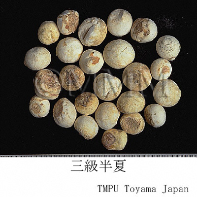| Remarks | "Banxia (半夏)" is sometimes used after being processed. Processed "Banxia" consists of "Fabanxia (法半夏)" and "Jiangbanxia (姜半夏)". "Fabanxia (法半夏)" is processed with "Gancao (glycyrrhiza/liquorice)" and burnt lime. It is often used for eliminating dampness and resolving phlegm. "Jiangbanxia (姜半夏)" is processed with "Shengjiang (fresh ginger)" and alum. It is often used for lowering the adverse flow of qi to stop vomiting. In rare cases, the tuber of Pinellia pedatisecta Schott, P. tripartita Schott (Jap. name: Ōhange) or Arisaema spp. are blended into Chinese Banxia in the market. "Shuy-banxia (水半夏)" is the tuber of Typhonium sp. | |||||