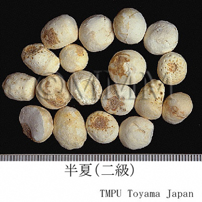 | Remarks | "Banxia (半夏)" is sometimes used after being processed. Processed "Banxia" consists of "Fabanxia (法半夏)" and "Jiangbanxia (姜半夏)". "Fabanxia (法半夏)" is processed with "Gancao (glycyrrhiza/liquorice)" and burnt lime. It is often used for eliminating dampness and resolving phlegm. "Jiangbanxia (姜半夏)" is processed with "Shengjiang (fresh ginger)" and alum. It is often used for lowering the adverse flow of qi to stop vomiting. In rare cases, the tuber of Pinellia pedatisecta Schott, P. tripartita Schott (Jap. name: Ōhange) or Arisaema spp. are blended into Chinese Banxia in the market. "Shuy-banxia (水半夏)" is the tuber of Typhonium sp. | |||||