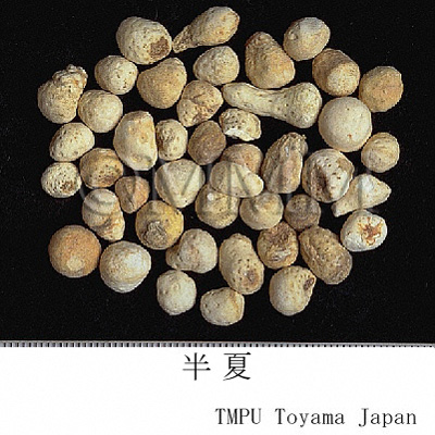 | Remarks | "Banxia (半夏)" is sometimes used after being processed. Processed "Banxia" consists of "Fabanxia (法半夏)" and "Jiangbanxia (姜半夏)". "Fabanxia (法半夏)" is processed with "Gancao (glycyrrhiza/liquorice)" and burnt lime. It is often used for eliminating dampness and resolving phlegm. "Jiangbanxia (姜半夏)" is processed with "Shengjiang (fresh ginger)" and alum. It is often used for lowering the adverse flow of qi to stop vomiting. In rare cases, the tuber of Pinellia pedatisecta Schott, P. tripartita Schott (Jap. name: Ōhange) or Arisaema spp. are blended into Chinese Banxia in the market. "Shuy-banxia (水半夏)" is the tuber of Typhonium sp. | |||||