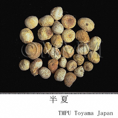 Remarks"Banxia (半夏)" is sometimes used after being processed. Processed "Banxia" consists of "Fabanxia (法半夏)" and "Jiangbanxia (姜半夏)". "Fabanxia (法半夏)" is processed with "Gancao (glycyrrhiza/liquorice)" and burnt lime. It is often used for eliminating dampness and resolving phlegm. "Jiangbanxia (姜半夏)" is processed with "Shengjiang (fresh ginger)" and alum. It is often used for lowering the adverse flow of qi to stop vomiting. In rare cases, the tuber of Pinellia pedatisecta Schott, P. tripartita Schott (Jap. name: Ōhange) or Arisaema spp. are blended into Chinese Banxia in the market. "Shuy-banxia (水半夏)" is the tuber of Typhonium sp.