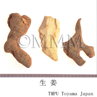 | Remarks | Since ancient times, Shengjiang, in Chinese traditional formulae, has been representing fresh ginger, and Ganjiang means dried ginger. That is, dried Shengjiang (or Ganshengjiang) in Chinese drug market indicates Ganjiang in Chinese traditional formulae (Kampo formulae). However, Ganjiang in the recent market means dried, after steamed, Shengjiang. It can be called processed one. In China, in contrast, fresh ginger is Shengjiang and dried is Ganjiang. In addition, there is Paojiang which is a processed drug. Paojiang is made as follows.: First of all, the clean sand (Gefen, Huashifen) should be put into a pan and heated at strong fire. The dried unpeeled Shengjiang is added and mixed until the surface swells and the color turns to brown. Then it is picked out and cooled in air. Shengjiang has greater effects in strengthening the function of the stomach and relieving vomiting than that of Ganjiang. In case Ganshengjiang is applied as a substitute for Shengjiang, the dose should be one third to one fifth of the traditionally indicated amount. | |||||