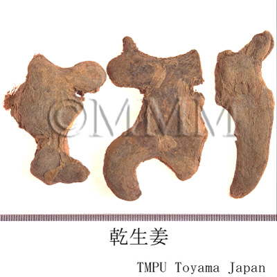 | Remarks | Since ancient times, Shengjiang, in Chinese traditional formulae, has been representing fresh ginger, and Ganjiang means dried ginger. That is, dried Shengjiang (or Ganshengjiang) in Chinese drug market indicates Ganjiang in Chinese traditional formulae (Kampo formulae). However, Ganjiang in the recent market means dried, after steamed, Shengjiang. It can be called processed one. In China, in contrast, fresh ginger is Shengjiang and dried is Ganjiang. In addition, there is Paojiang which is a processed drug. Paojiang is made as follows.: First of all, the clean sand (Gefen, Huashifen) should be put into a pan and heated at strong fire. The dried unpeeled Shengjiang is added and mixed until the surface swells and the color turns to brown. Then it is picked out and cooled in air. Shengjiang has greater effects in strengthening the function of the stomach and relieving vomiting than that of Ganjiang. In case Ganshengjiang is applied as a substitute for Shengjiang, the dose should be one third to one fifth of the traditionally indicated amount. | |||||