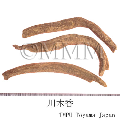 | Remarks | The real Muxiang (木香) is the root of Saussurea lappa Clarke (= Aucklandia lappa Decne.) of family Compositae. Chuanmuxiang (Jap. name: 川木香, Senmokkō) is generally processed by roasting the top of the root. In the past, it was erroneously applied to Inula racemosa Hook. f. (Jap. name: Zōmokkō). The congenetic root of Vladimiria denticulata Ling. is circulated in the Chinese market under the name of Yueximuxiang (越西木香). | |||||