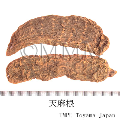 | Remarks | Gastrodia elata Blume (Jap. name: Oninoyagara) grows naturally in Japan. However, it is not produced for commercial purpose. The fake one, which is the dried Solanum tuberosum L. (Jap. name: Jagaimo) is circulated in the market under the name "Yang-Tianma" or "Gui-Tianma". Therefore, care should be taken. | |||||