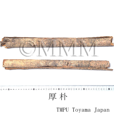 | Remarks | The Japanese Pharmacopoeia defines three kinds of bark as Houpo and it is required to contain not less than 0.8% of magnolol. The Pharmacopoeia of People's Republic of China defines Houpo, Magnoliae Officinalis Cortex, as the bark of M. officinalis (Chuanpo, Hubeipo, etc) and M. officinalis var. biloba (Wenpo, Wenzhouhoupo). Aside from the bark (trunk bark, branch bark), the root bark is also used. In the Japanese market, Chinese houpo is named generically as Tokoboku. In Korea, as well as the bark of M. officinalis, the bark of Machilus thunbergii Sieb. et Zucc. of family Lauraceae (Jap. name: Tabunoki) is substituted. Though it is called Houpo or Baopo, the properties and flavors are completely different. | |||||