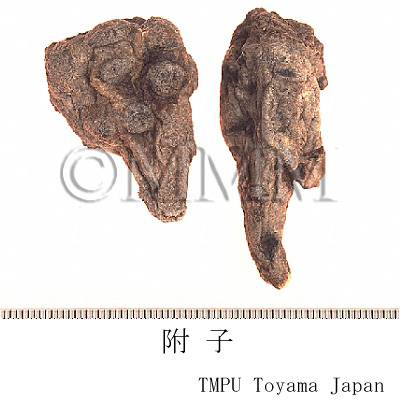 | Remarks | The Pharmacopoeia of the People's Republic of China defines "Fuzi (附子)" as the processed tuber (lateral roots) of Aconitum carmichaeli. The processed aconite root, which is compressed and heated, is used for many kinds of Kampo drug products. Since aconitum alkaloids have strong toxicity, there are many processes to reduce it. It is called "Yanfuzi (塩附子)," "Paofuzi (炮附子)," "Heifupian (黒附片)" or "Baifupian (白附片)" depending on each process. - Chinese "Yanfuzi (塩附子)", the tuber of Aconitum carmichaeli, is half dried after rinsed in the solution of salt water and bittern. - "Paofuzi (炮附子)" is the dried "Yanfuzi (塩附子)" after being peeled and divided lengthwise. - Both "Heifupian (黒附片)" and "Refupian (熟附片)" are made as follows : rinse roots in bittern, divide them lengthwise, stain with dye stuff, dry after steaming. - Though "Baifupian (白附片)" is the similar product to "Heifupian (黒附片)", it is barked and smoked by sulfur untill it becomes white at its final process. The Japanese "Shirakawa-bushi," the tuber of Aconitum japonicum, is made as follows : rinse it in salt water, coat with lime and dry. It is mentioned in the Japanese Pharmacopoeia that there are three ways in processing the aconite tuber. 1: Autoclaving. 2: Heating or autoclaving after rinsing in salt or rock salt solution. 3: Treating with calcium hydroxide after rinsing in salt solution. | ||||||