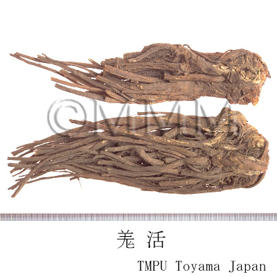 Chinese Qianghuo is the root of genus Angelica of family Umbelliferae. Both Qianghuo and Duhuo (Araliae Cordatae Rhizoma) have benefits of expelling wind and removing dampness. They relieves pain and removes palsy as well. Qianghuo is a medicine of Taiyang meridians. It has the advantage of expelling dryness and diaphoresis, and should be used for exterior syndrome due to wind cold, while Duhuo has no effect of diaphoresis. Duhuo is a drug of Yin Minimum Kidney Meridian, and used with Xixin (Asiasari Radix), which has a beneficial effects on headache resulting from Yin Minor Channel. In ancient times, it was said "Qianghuo cures hives and Duhuo cures latent wind. Qianghuo tends to specialize in the exterior and Duhuo tends to specialize in the interior."